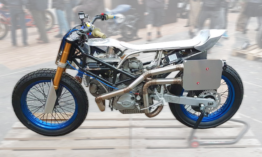 Eine Suzuki DR BIG aus 1991 war hier das Spenderbike (Einzylinder mit 800cc) – und die Frau Dr. fällt hier eher durch Perfektion auf: das Vorderrad von einer BMW F650, der Tank von einer Yamha XS 650, ein neuer Minitacho und das Ganze mit Straßenzulassung harmonisch zusammengeführt. Auch wenn Sie bereits einen Scrambler-Preis gewonnen hat,…