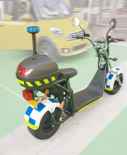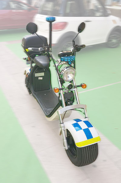 Die spanische Polizei rollt breiten Fußes elektrisch daher – eher nicht Eindruck schinden wollend. Analogien zum „Kaufhaus-Cop“ mögen da bitte bei der Verbrecherjagd erst garnicht aufkommen.
